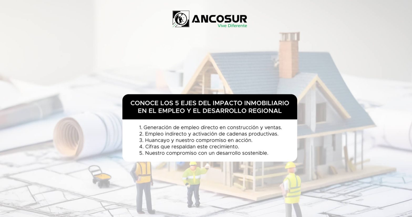 Artículo APORTE AL EMPLEO Huancayo, Junio del 2025 En Ancosur, apostamos por el desarrollo del país a través del sector inmobiliario, generando empleo y dinamismo económico. Con nuestros proyectos en Huancayo, transformamos espacios y creamos oportunidades reales para la comunidad. Generación de empleo directo en construcción y ventas. La industria inmobiliaria tiene un fuerte impacto… Seguir leyendo ANCOSUR Y SU APORTE AL EMPLEO DESDE EL SECTOR INMOBILIARIO
